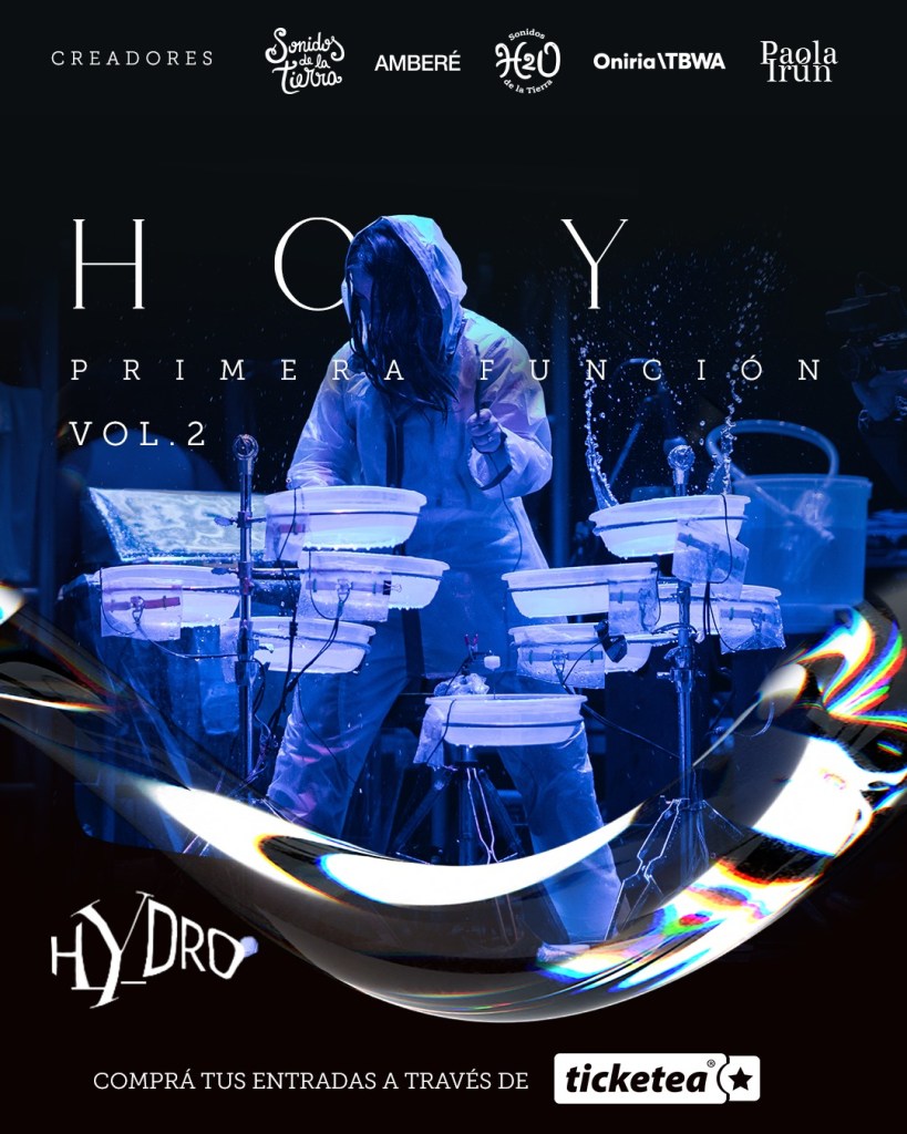 A través de un guion musical y visual, el Volumen 2 de H_Y_DRO: Experimental Water Show narra el viaje cíclico de una sola gota de agua, pasando por la llovizna, aguacero, tormenta, inundación, sequía, para volver a una sola gota que personifica la importancia del recurso natural. Esta experiencia multisensorial es liderada por la directora dramaturga Paola Irún a cargo de la propuesta escénica y por Willian Aguayo en la dirección musical y cuenta con la participación de artistas destacados como Andrea Valobra, El Princi de la Chaca, Chirola, y Purahéi Soul.